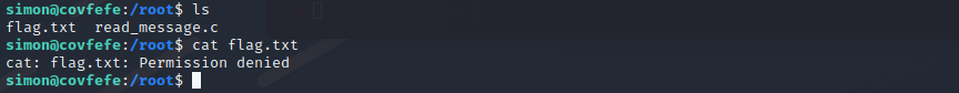 我们进入系统之后,首先查看的是/etc/passwd和home目录下面的文件,但是都没有发现可以利用的点,但是我们可以进入root目录,里面有一个flag,我们打不开,如下图。