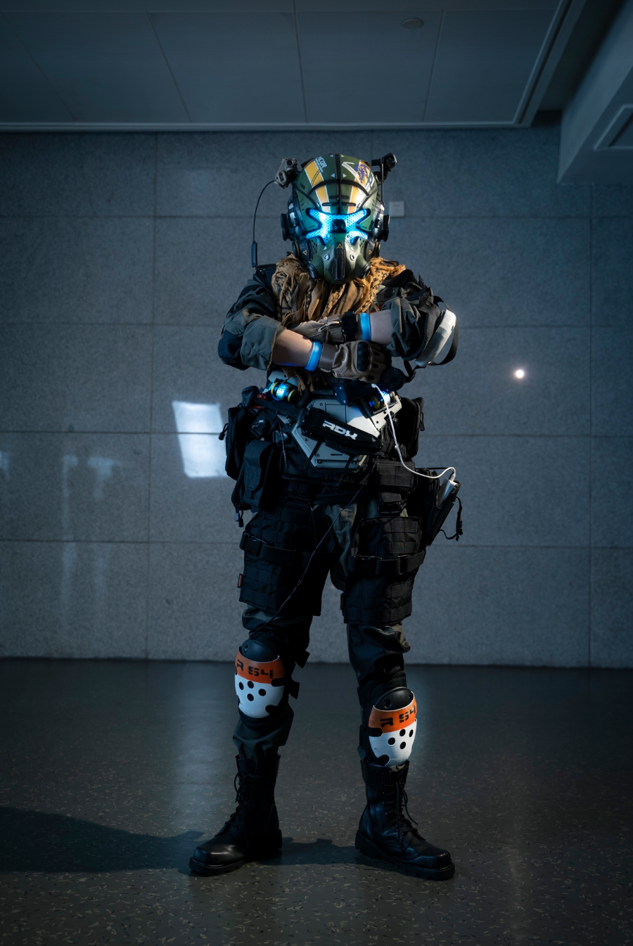 之后觉得我不能当观众于是乎,我也用闲钱组了一套COSPLAY的套装是泰坦陨落2里面的铁驭,贵是真的贵,但是帅是真的帅,我记得是2023年6月24日左右的重庆taxi动漫文化节,当然还是和同学一起去的,有了前面的经验这次去就很轻松了,下面这张是我最喜欢的一张。